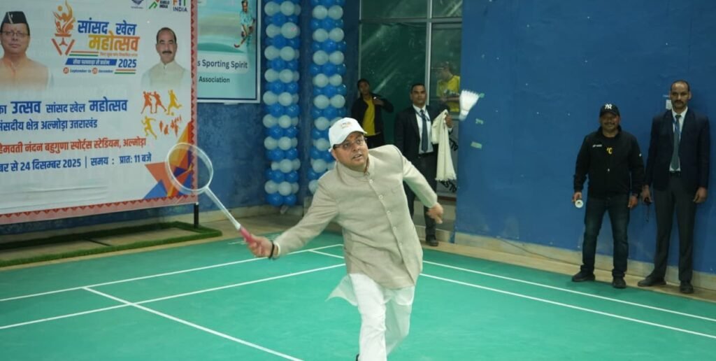 मुख्यमंत्री पुष्कर सिंह धामी ने सोमवार को अल्मोड़ा में सांसद खेल महोत्सव का शुभारंभ किया। कार्यक्रम के दौरान उन्होंने फुटबॉल और बैडमिंटन प्रतियोगिता का उद्घाटन किया तथा अंतरराष्ट्रीय क्रिकेट खिलाड़ी एकता बिष्ट और खेल प्रशिक्षकों को सम्मानित किया।