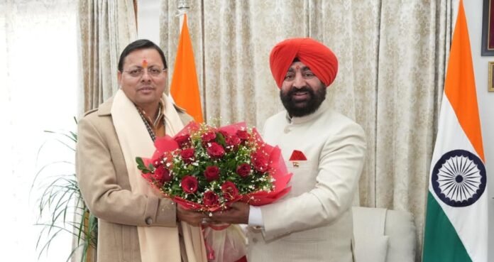 राज्यपाल लेफ्टिनेंट जनरल गुरमीत सिंह(से नि)से गुरुवार को लोक भवन में मुख्यमंत्री श्री पुष्कर सिंह धामी ने भेंट कर नववर्ष 2026 की शुभकामनाएं दी। राज्यपाल ने भी मुख्यमंत्री को नए वर्ष की हार्दिक बधाई और शुभकामनाएं दी। इस अवसर पर प्रदेश के समग्र विकास,जनकल्याण एवं सुशासन से जुड़े विषयों पर सकारात्मक एवं सार्थक संवाद हुआ। इस अवसर पर कैबिनेट मंत्री गणेश जोशी ने भी राज्यपाल से भेंट कर नव वर्ष की बधाई एवं शुभकामनाएं दी।
