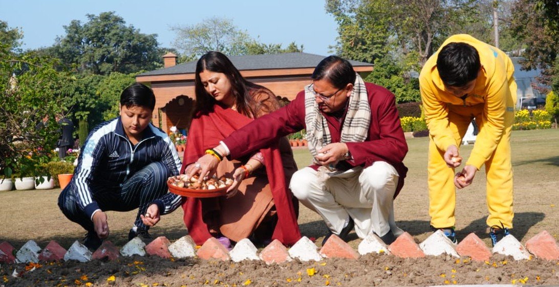 मुख्यमंत्री पुष्कर सिंह धामी ने मुख्यमंत्री आवास परिसर के उद्यान में 17 प्रजातियों के ट्यूलिप उगाने की मुहिम का शुभारंभ करते हुए सपरिवार ट्यूलिप के बल्ब रोपे। मुख्यमंत्री आवास परिसर के उद्यान में इस बार ट्यूलिप के चार हजार बल्ब रोपे जा रहे हैं। जिनमें लेक पर्पल तथा बाईकलर प्रजाति के खास रंगत वाले ट्यूलिप भी शामिल हैं।