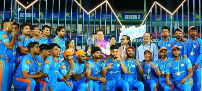 मुख्यमंत्री पुष्कर सिंह धामी ने क्रिकेट एसोसिएशन ऑफ उत्तराखंड के द्वारा राजीव गांधी इंटरनेशनल स्टेडियम रायपुर देहरादून में आयोजित उत्तराखंड प्रीमियर लीग 2025 के समापन समारोह में प्रतिभाग किया। हरिद्वार एलमास उत्तराखंड प्रीमियर लीग 2025 चैंपियनशिप का विजेता रहा। सभी खिलाड़ियों एंव आयोजन समिति के पदाधिकारियों का स्वागत व अभिनन्दन करते हुए मुख्यमंत्री श्री पुष्कर सिंह धामी ने उत्कृष्ट प्रदर्शन द्वारा उत्तराखंड प्रीमियर लीग चैंपियनशिप को जीतने वाली टीम के सभी खिलाड़ियों को बधाई दी।