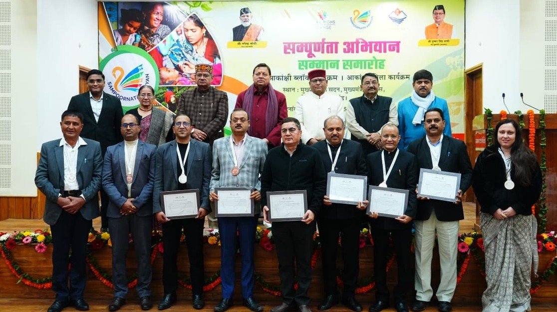 मुख्यमंत्री पुष्कर सिंह धामी ने शुक्रवार को मुख्य सेवक सदन,देहरादून में सम्पूर्णता अभियान सम्मान समारोह कार्यक्रम में प्रतिभाग किया। इस अवसर पर मुख्यमंत्री ने नीति आयोग,भारत सरकार द्वारा प्रदत्त प्रशस्ति पत्र एवं पदकों से आकांक्षी जनपद कार्यक्रम एवं आकांक्षी ब्लॉक कार्यक्रम में सर्वश्रेष्ठ प्रदर्शन करने वाले जिलों एवं विकासखंडों को सम्मानित किया। इस अवसर पर मुख्यमंत्री ने(Uttarakhand at 25:A Himalayan State With Infinite Possibilities) पुस्तक का विमोचन भी किया।