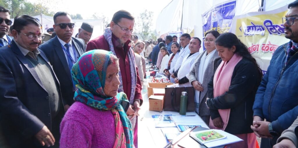 मुख्यमंत्री पुष्कर सिंह धामी ने ‘जन-जन की सरकार,जन-जन के द्वार’ अभियान के क्रियान्वयन की जमीनी पड़ताल के लिए शुक्रवार को देहरादून जिले के अंतर्गत रायपुर ब्लॉक के खैरीमान सिंह में आयोजित न्याय पंचायत स्तरीय शिविर का निरीक्षण किया। इस अवसर पर मुख्यमंत्री ने ‘प्रशासन गांव की ओर’ कार्यक्रम के तहत आयोजित बहुद्देश्यीय शिविर में जन-समस्याओं के निस्तारण की स्थिति की जानकारी ली और अभियान के संबंध में फीडबैक प्राप्त किया।