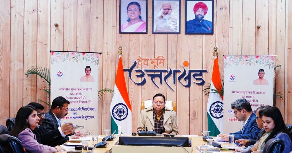 मुख्यमंत्री पुष्कर सिंह धामी ने गुरूवार को मुख्यमंत्री आवास में समाज कल्याण विभाग की विभिन्न सामाजिक सुरक्षा पेंशन योजनाओं के अंतर्गत माह जनवरी 2026 की पेंशन किस्त का वन-क्लिक के माध्यम से लाभार्थियों के बैंक खातों में भुगतान किया। यह पहल राज्य सरकार की तकनीक आधारित, पारदर्शी और संवेदनशील शासन व्यवस्था को सुदृढ़ करती है तथा सामाजिक सुरक्षा के प्रति सरकार की मजबूत प्रतिबद्धता को दर्शाती है।