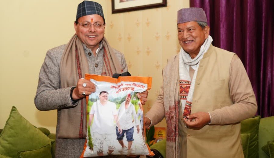 - सीएम धामी ने अपने खेत में उत्पादित चावल हरीश रावत को भेंट किए।