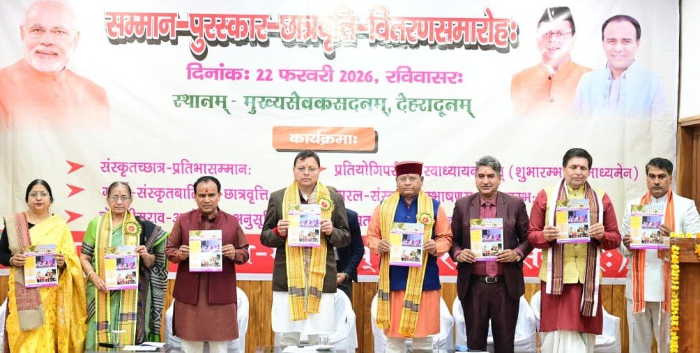 मुख्यमंत्री पुष्कर सिंह धामी ने रविवार को मुख्यमंत्री कैम्प कार्यालय स्थित मुख्य सेवक सदन में संस्कृत छात्र प्रतिभा सम्मान कार्यक्रम में भाग लिया। इस अवसर पर उन्होंने गार्गी बालिका संस्कृत छात्रवृत्ति,डॉ.भीमराव अंबेडकर अनुसूचित जाति,अनुसूचित जनजाति संस्कृत छात्रवृत्ति भी विद्यार्थियों को प्रदान की। कार्यक्रम के दौरान मुख्यमंत्री ने प्रतियोगी परीक्षा स्वाध्याय केन्द्र एवं ई-संस्कृत संभाषण शिविर का वर्चुअल शुभारंभ और उत्तराखण्ड संस्कृत विश्वविद्यालय के त्रैमासिक पत्र संस्कृत वार्ता का विमोचन भी किया।