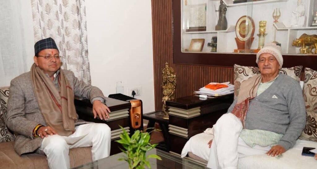 मुख्यमंत्री पुष्कर सिंह धामी ने आज उत्तराखंड के पूर्व मुख्यमंत्री एवं महाराष्ट्र के पूर्व राज्यपाल भगत सिंह कोश्यारी से उनके डिफेंस कॉलोनी,देहरादून स्थित आवास पर शिष्टाचार भेंट की।