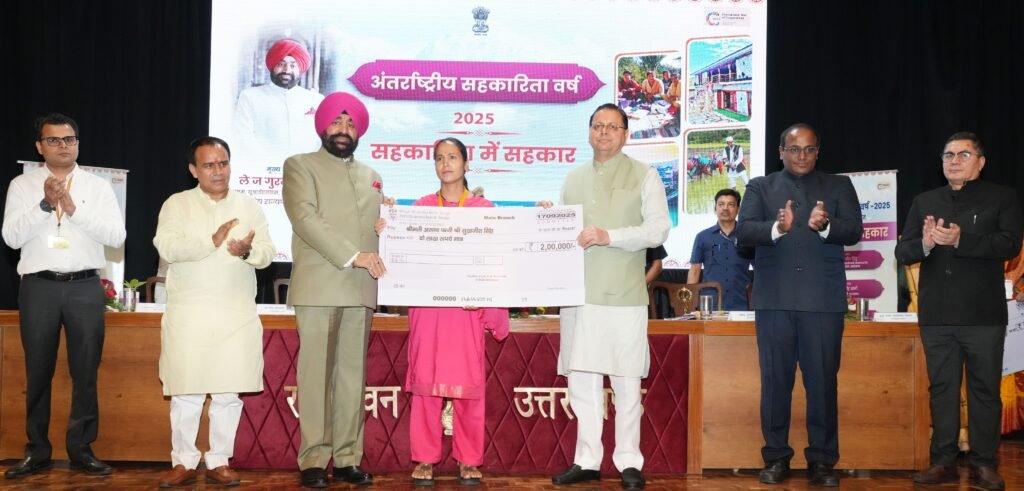 राज्यपाल लेफ्टिनेंट जनरल गुरमीत सिंह (से नि)एवं मुख्यमंत्री पुष्कर सिंह धामी ने बुधवार को राजभवन में अंतर्राष्ट्रीय सहकारिता वर्ष-2025के उपलक्ष्य पर आयोजित ‘सहकारिता में सहकार’ कार्यक्रम में प्रतिभाग किया। इस अवसर पर राज्यपाल और मुख्यमंत्री की उपस्थिति में भारतीय सहकारी समिति लिमिटेड और उत्तराखण्ड राज्य सहकारी संघ के मध्य समझौता ज्ञापन हुआ। इस समझौते ज्ञापन के माध्यम से न केवल बीज उत्पादन और वितरण के क्षेत्र में नई संभावनाएं खुलेंगी बल्कि राज्य सहकारी समितियों और किसानों के लिए भी एक मील का पत्थर साबित होगा। दूसरा समझौता ज्ञापन राष्ट्रीय सहकारी निर्यात समिति और उत्तराखण्ड राज्य सहकारी संघ के बीच हुआ जो राज्य के कृषि उत्पादकों सहकारी समितियों और किसानों को राष्ट्रीय एवं अंतर्राष्ट्रीय बाजारों तक पहुंचाने की दिशा में महत्वपूर्ण साबित होगा।