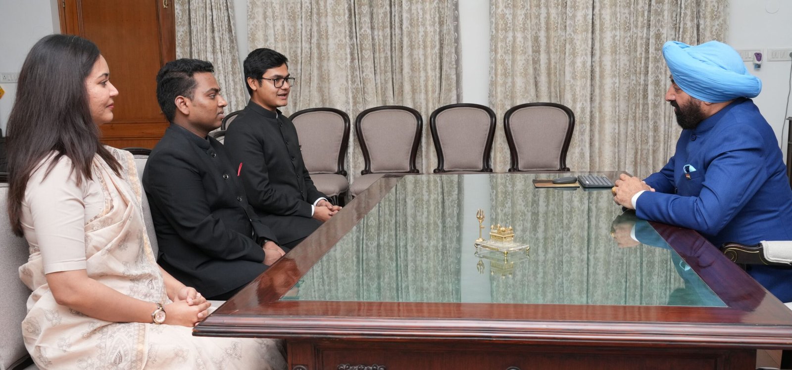 राज्यपाल लेफ्टिनेंट जनरल गुरमीत सिंह(से नि)से सोमवार को लोक भवन में 2024 बैच के आईएएस प्रशिक्षु अधिकारियों ने शिष्टाचार भेंट की। इस अवसर पर राज्यपाल ने प्रशिक्षु अधिकारियों से कहा कि वे अपने कार्य में ईमानदारी,पारदर्शिता और जनसेवा को हमेशा प्राथमिकता दें। उन्होंने कहा कि प्रशासनिक अधिकारी सरकार और जनता के बीच एक महत्वपूर्ण कड़ी होते हैं,इसलिए उन्हें संवेदनशीलता और जिम्मेदारी के साथ काम करना चाहिए।