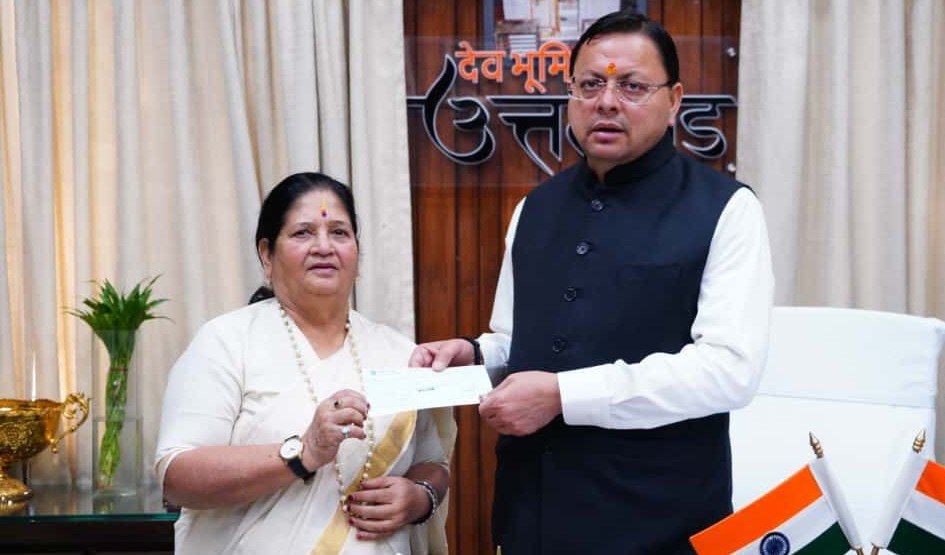 Dehradun:-पर्वतारोही बछेंद्री पाल ने मुख्यमंत्री राहत कोष के लिए प्रदान किया 10 लाख का चेक