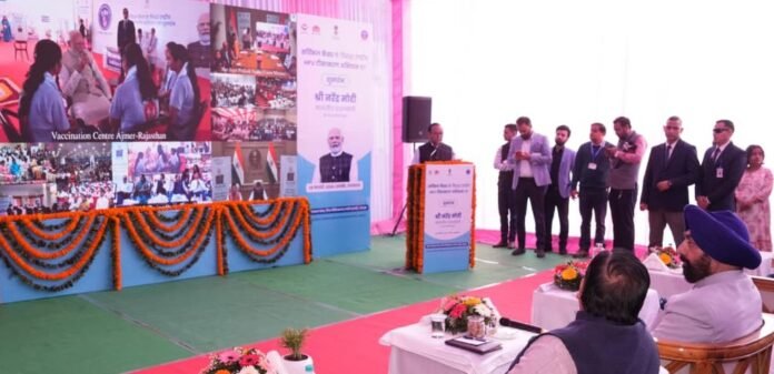 प्रधानमंत्री नरेंद्र मोदी ने आज अजमेर,राजस्थान से सर्विकल कैंसर की रोकथाम के लिए राष्ट्रीय एचपीवी टीकाकरण का वर्चुअल शुभारंभ किया। यह टीकाकरण अभियान महिला स्वास्थ्य,किशोरियों के कल्याण एवं स्वास्थ्य सेवाओं के प्रति भारत सरकार की प्रतिबद्धता को दर्शाता है। इसी क्रम में गांधी शताब्दी चिकित्सालय देहरादून में राज्यपाल लेफ्टिनेंट जनरल गुरमीत सिंह (से नि) ने इस टीकाकरण का शुभारंभ किया,जिससे प्रदेश-व्यापी अभियान की औपचारिक शुरुआत हुई।