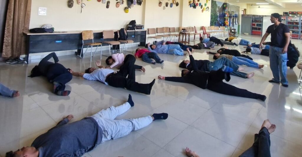 कार्यशाला में प्रतिभागियों ने श्वास अभ्यास,संवेदनात्मक जागरूकता,लाबान मूवमेंट विश्लेषण,समूह संपर्क अभ्यास,रंग अभिव्यक्ति तथा स्थिर चित्र आधारित कहानी निर्माण जैसे विविध अभ्यासों में हिस्सा लिया। इन अनुभवात्मक गतिविधियों से उन्होंने मनोवैज्ञानिक प्रक्रियाओं की शारीरिक अभिव्यक्ति को महसूस किया।