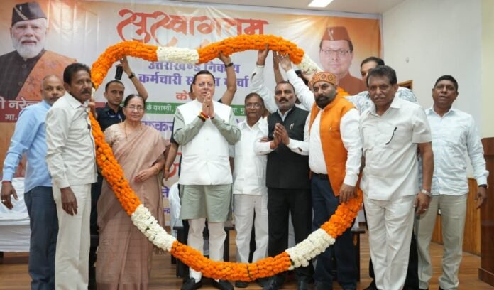 मुख्यमंत्री पुष्कर सिंह धामी ने बुधवार को मुख्यमंत्री कैंप कार्यालय स्थित मुख्य सेवक सदन में उत्तराखंड निकाय कर्मचारी संयुक्त मोर्चा द्वारा आयोजित आभार रैली में प्रतिभाग किया। उन्होंने कर्मचारियों द्वारा व्यक्त किए गए सम्मान के प्रति आभार व्यक्त करते हुए इसे प्रदेश की देवतुल्य जनता को समर्पित बताया।