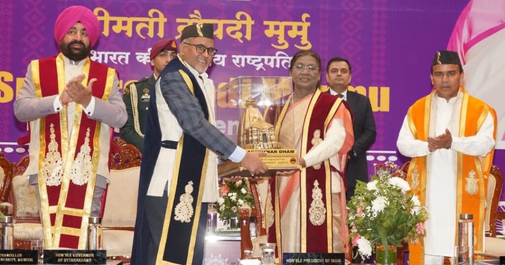 राष्ट्रपति द्रौपदी मुर्मु ने कुमाऊँ विश्वविद्यालय, नैनीताल के 20वें दीक्षांत समारोह में बतौर मुख्य अतिथि प्रतिभाग किया। इस दौरान राष्ट्रपति ने उत्कृष्ट प्रदर्शन करने वाले विद्यार्थियों को गोल्ड मेडल और उपाधियां प्रदान की। इस अवसर पर राज्यपाल लेफ्टिनेंट जनरल गुरमीत सिंह (से नि)भी उपस्थित रहे।