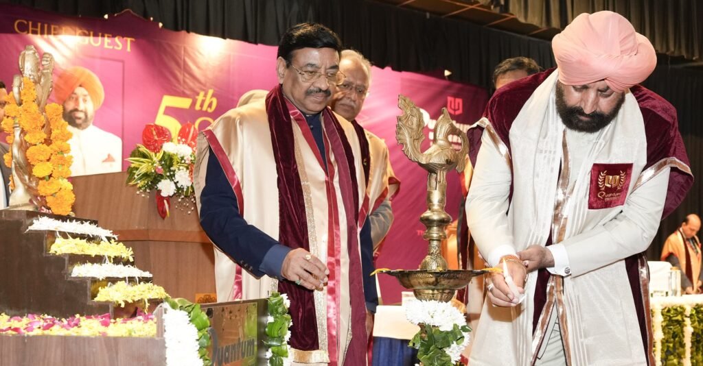 राज्यपाल लेफ्टिनेंट जनरल गुरमीत सिंह (से नि) ने शनिवार को क्वांटम विश्वविद्यालय,रुड़की के 5वें दीक्षांत समारोह में मुख्य अतिथि के रूप में प्रतिभाग किया। राज्यपाल ने उत्कृष्ट प्रदर्शन करने वाले विद्यार्थियों को गोल्ड मेडल प्रदान किए। इस अवसर पर विश्वविद्यालय में सर्वश्रेष्ठ उत्कृष्ट प्रदर्शन करने वाली छात्रा साक्षी राज को प्रेसिडेंस मेडल से सम्मानित किया गया। राज्यपाल ने विद्यार्थियों को अपने जीवन में बड़े लक्ष्य निर्धारित करने,परिश्रम और अनुशासन के साथ कार्य करने और समाज तथा राष्ट्र के प्रति अपनी जिम्मेदारियों को निभाने की प्रेरणा दी।