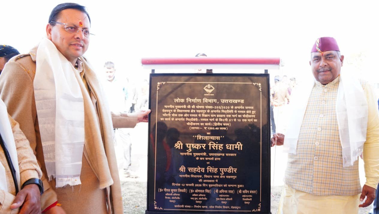 मुख्यमंत्री पुष्कर सिंह धामी ने मुख्यमंत्री घोषणा के अंतर्गत जनपद देहरादून के सहसपुर विधानसभा क्षेत्र में मीठीबेरी से परवल होते हुए चांदनी चौक तक तथा परवल से विज्ञान धाम झाझरा तक 1203.40 लाख रुपये की लागत से निर्मित होने वाले मार्ग के चौड़ीकरण कार्य के द्वितीय चरण(किलोमीटर 1 से 10) का शिलान्यास किया।