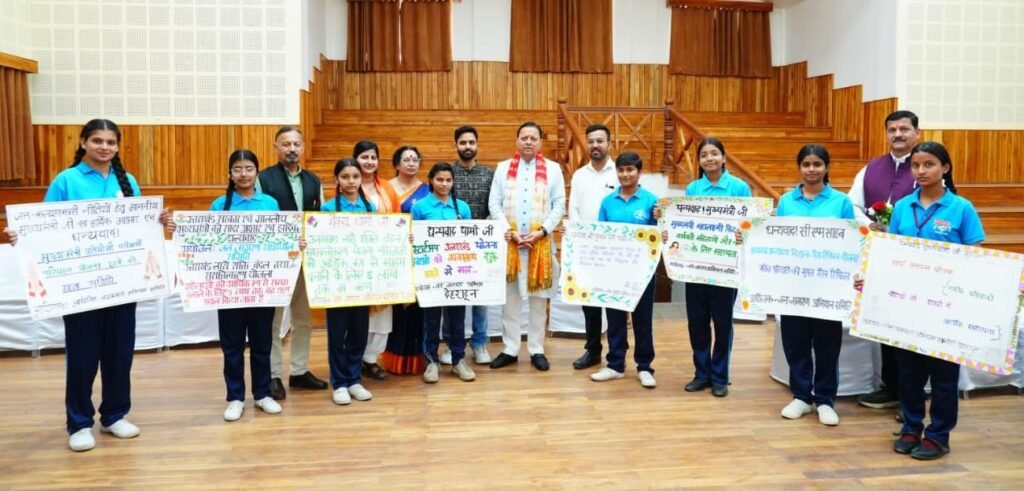जन जागरण अभियान समिति के तत्वाधान में विभिन्न विद्यालयों की छात्राओं ने राज्य सरकार द्वारा संचालित 15 उत्कृष्ट योजनाओं पर आधारित आकर्षक पोस्टर तैयार कर मुख्यमंत्री के समक्ष प्रस्तुत किए। छात्राओं ने इन योजनाओं के माध्यम से समाज के विभिन्न वर्गों को मिल रहे लाभ के प्रति आभार व्यक्त किया। मुख्यमंत्री ने छात्राओं के प्रयासों की सराहना करते हुए कहा कि इस प्रकार की रचनात्मक गतिविधियां न केवल विद्यार्थियों में जागरूकता बढ़ाती हैं,बल्कि उन्हें समाज और शासन से जुड़े विषयों के प्रति संवेदनशील भी बनाती हैं। उन्होंने कहा कि राज्य सरकार शिक्षा, महिला सशक्तिकरण एवं युवा विकास के क्षेत्र में निरंतर कार्य कर रही है और भविष्य में भी जनकल्याणकारी योजनाओं के माध्यम से समाज के सभी वर्गों के उत्थान के लिए प्रतिबद्ध रहेगी।