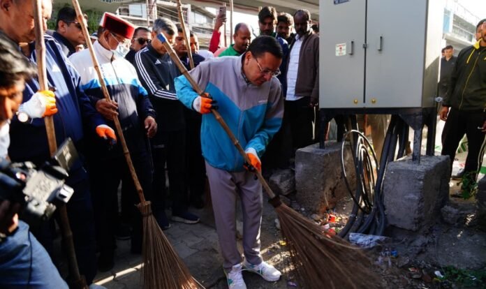 मुख्यमंत्री पुष्कर सिंह धामी ने सोमवार को बल्लूपुर चौक में नगर निगम,देहरादून द्वारा आयोजित “स्वेच्छा से स्वच्छता” कार्यक्रम में प्रतिभाग कर प्रदेशवासियों को स्वच्छता के प्रति जागरूक रहने का संदेश दिया। इस अवसर पर मुख्यमंत्री ने स्वयं सफाई अभियान में भाग लेते हुए जनसामान्य को स्वच्छ वातावरण बनाए रखने के लिए प्रेरित किया।