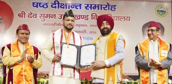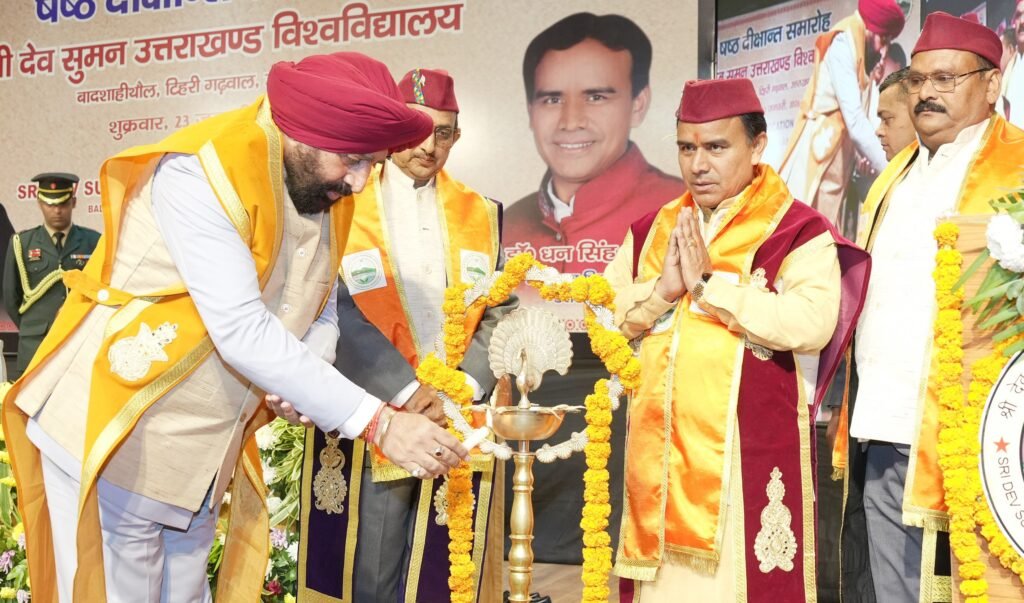 राज्यपाल लेफ्टिनेंट जनरल गुरमीत सिंह (से नि) ने शुक्रवार को श्री देव सुमन उत्तराखण्ड विश्वविद्यालय के छठे दीक्षांत समारोह में मुख्य अतिथि के रूप में प्रतिभाग किया। पंडित ललित मोहन शर्मा परिसर,ऋषिकेश में आयोजित दीक्षांत समारोह में राज्यपाल ने उत्तीर्ण हुए विद्यार्थियों को उपाधियां और सर्वोच्च अंक प्राप्त करने वाले विद्यार्थियों को गोल्ड मेडल प्रदान कर शुभकामनाएं दी। कार्यक्रम में उन्होंने उत्कृष्ट सेवाएं दे रहे शिक्षकों को भी सम्मानित किया। इस अवसर पर राज्यपाल ने परिसर में अतिथि गृह,टाइप-5 आवास और बहुउद्देशीय भवन का भी लोकार्पण किया।