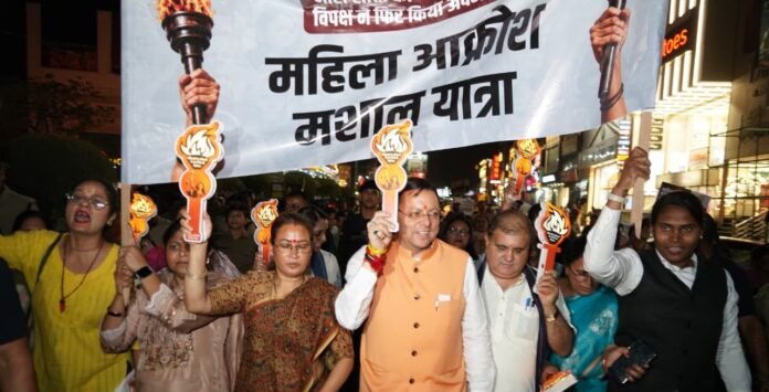 देहरादून में मंगलवार को गांधी पार्क से घण्टाघर तक मुख्यमंत्री पुष्कर सिंह धामी के नेतृत्व में आयोजित महिला आक्रोश मशाल यात्रा ने प्रदेश में एक नया संदेश दिया। इस विशाल आयोजन में महिला आरक्षण बिल गिरने के विरोध में हजारों की संख्या में माताएं,बहनें और बेटियां शामिल हुईं,जिसने स्पष्ट कर दिया कि अब नारी शक्ति अपने अधिकारों को लेकर पूरी तरह सजग और मुखर हो चुकी है।