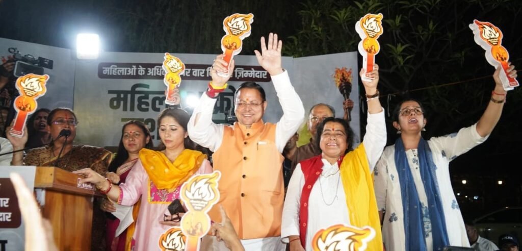 इस अवसर पर मुख्यमंत्री पुष्कर सिंह धामी ने कहा कि यह मशाल यात्रा केवल एक प्रतीकात्मक आयोजन नहीं,बल्कि उन ताकतों के खिलाफ जनाक्रोश है जो महिलाओं के अधिकारों में बाधा डालने का प्रयास कर रही हैं। उन्होंने संकेत दिया कि राज्य ही नहीं,बल्कि पूरे देश की नारी अब अपने सम्मान और अधिकारों के लिए एकजुट होकर खड़ी है।