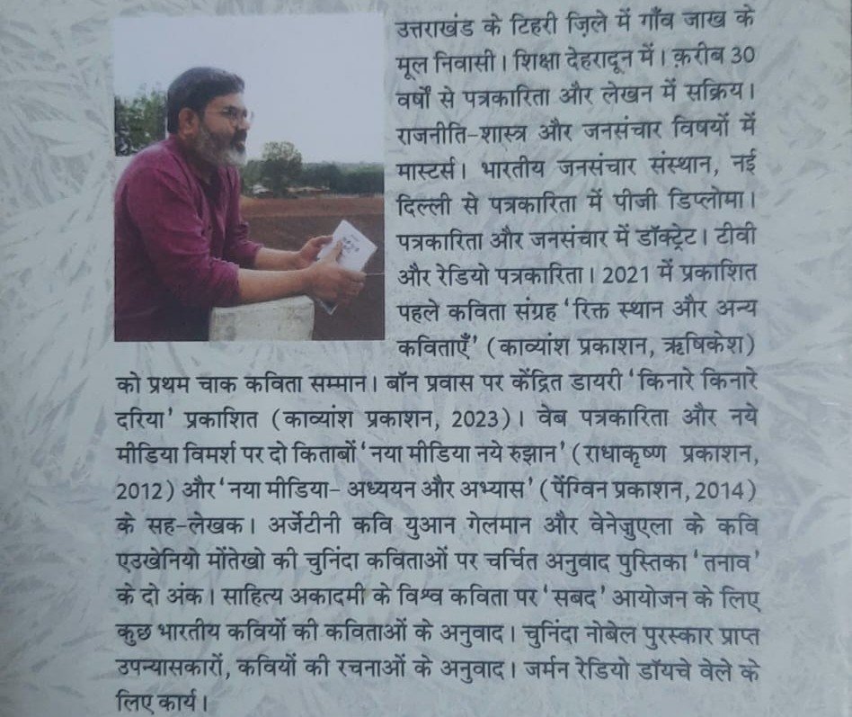 साहित्य गरिमा पुरस्कार समिति,हैदराबाद द्वारा वर्ष 2025 के प्रतिष्ठित ‘सिया सहचरी काव्य सम्मान’ के लिए पत्रकार व कवि शिवप्रसाद जोशी की काव्य कृति ‘गिनती के बाहर’ का राष्ट्रीय स्तर पर चयन किया गया है।