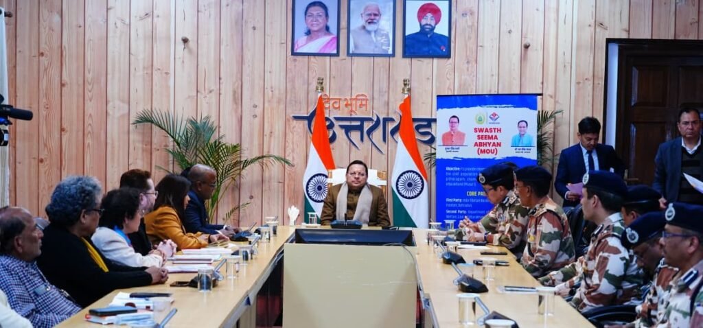 मुख्यमंत्री पुष्कर सिंह धामी की उपस्थिति में आज मुख्यमंत्री आवास में उत्तराखंड शासन एवं भारत–तिब्बत सीमा पुलिस(आईटीबीपी) के मध्य स्वस्थ सीमा अभियान के अंतर्गत एक महत्वपूर्ण समझौता ज्ञापन (MoU)पर हस्ताक्षर किए गए। इस अवसर पर स्वास्थ्य मंत्री डॉ.धन सिंह रावत एवं कैबिनेट मंत्री श्री सौरभ बहुगुणा भी उपस्थित रहे।