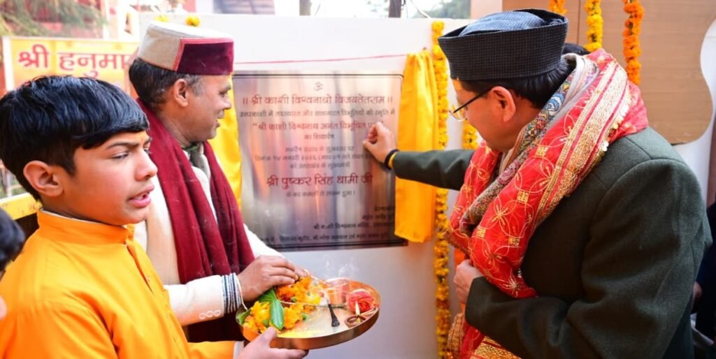 मुख्यमंत्री पुष्कर सिंह धामी ने शक्ति मंदिर एवं बाबा काशी विश्वनाथ मंदिर में की पूजा-अर्चना,संतों के आशीर्वचनों के शिलापट्टों किया लोकार्पण